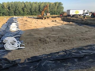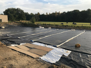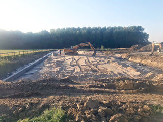 La construction de ce manège extérieur a été un véritable défi pour l'équipe d'Equi-P. L'arène est située dans une zone où le sol est très humide. Pas de sinécure, mais notre équipe sait s'y prendre. La piste de flux et reflux a déjà prouvé son utilité à plusieurs reprises. Lorsque la piste est inondée, elle est suffisamment sèche pour rouler après une heure. De cette façon, Pierre peut offrir à tous ses cavaliers des possibilités d'entraînement toute l'année sur une surface stable.